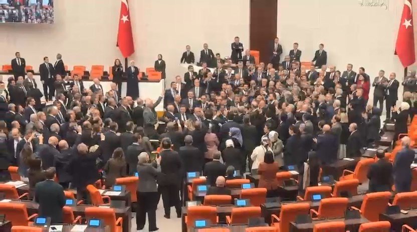Bozdağ’ın Bakan Gürlek’i yemin etmek üzere kürsüye davet etmesiyle, CHP milletvekilleri protesto amacıyla kürsüye doğru hareket etti. AK Parti grubunun da kürsüyü korumak için harekete geçmesiyle iki grup milletvekili karşı karşıya geldi. Bu sırada AK Parti Ankara Milletvekili Osman Gökçek ile CHP Şanlıurfa Milletvekili Mahmut Tanal arasında yumruklaşma yaşandı. Yaşanan fiziki müdahaleler üzerine Meclis Başkan Vekili Bozdağ, birleşime 15 dakika ara verdi.